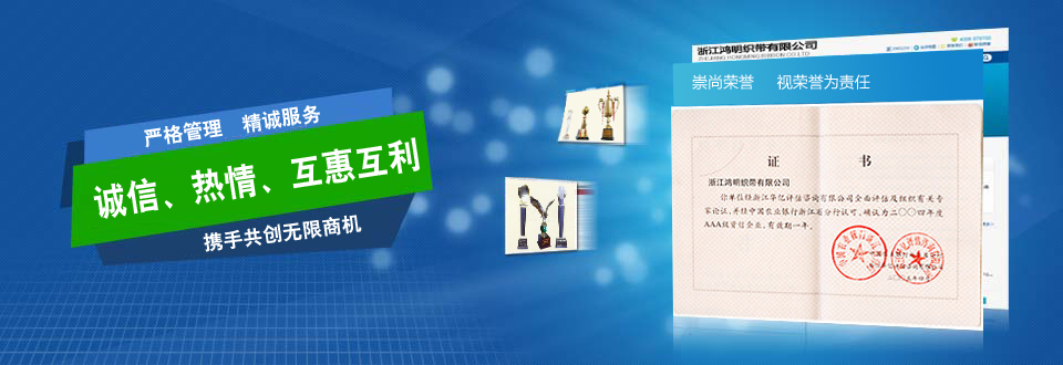 The copyright all reserved in 2005:Zhejiang Hongming Weaving Ribbon CO.,LTD ADD:Dadianxia Industrial Development Zone,Ruian City,Zhejiang